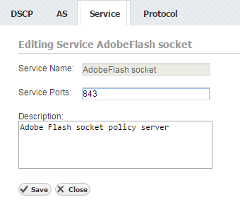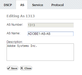 Administrator can set, and user can view DSCP, AS number, Service port and Protocol names and descriptions. These names are used in the application instead of numbers to to provide more human friendly statistics.